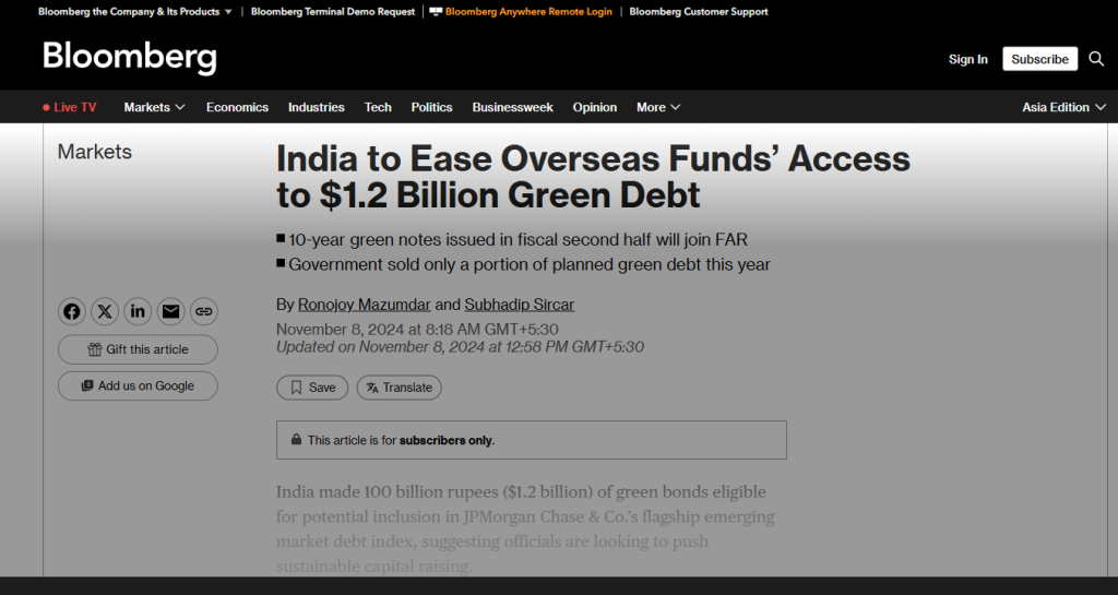 India to Ease Overseas Funds’ Access to $1.2 Billion Green Debt 10-year green notes issued in fiscal second half will join FAR Government sold only a portion of planned…